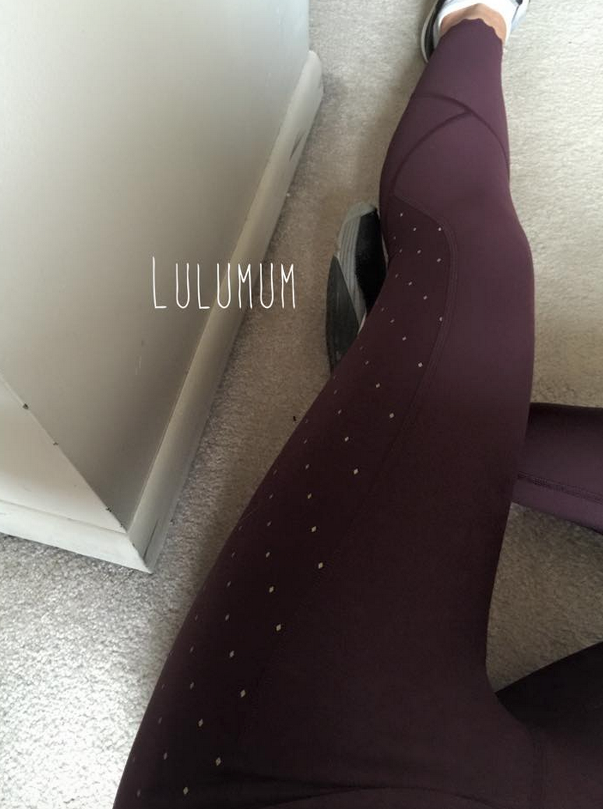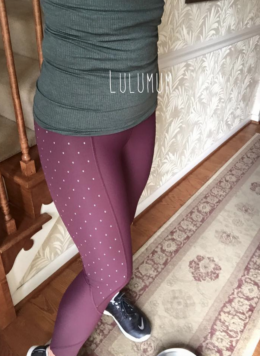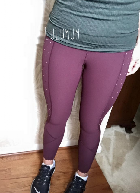 I just wanted to share some pics with you in case you wanted to post them – no big deal if you don’t! They’re of the new Tight Stuff Reflective tight in bordeaux, which I don’t think we’ve seen pics of yet. After all my pet peeving about how the bordeaux and gold were too close to school/sports teams colors, I went and ordered them anyway LOL. And I’m so glad I did.