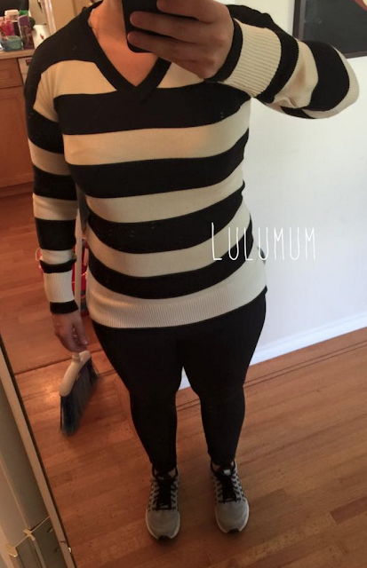 I was obsessed with the Om The Go Pullover in this Black/White rugby print when I saw it upload last week and really annoyed that Lululemon doesn’t have anything like this in adult sizes. I miss the Chai Time Sweater and this sweater hits the spot for me. I know that a lot of size 4/6/8 women buy Ivivva but I never considered it for my size 10 body until I saw this piece and wondered if it would work. My friend happened to be shopping at Ivivva on Friday so she obliged me with a try on of the sweater in size 14, she’s an adult size 6, and it looked awesome on her. On her, the sweater is tunic length which is the ideal fit. I went ahead and ordered it expecting it to be super tight in my arms and a crop top (which I’d store away as motivation goal top) but actually, the arms feel the same as my chai time sweaters and although the body doesn’t have the butt covering length I’d like, I think it looks great as a shorter length too. It still goes over my entire hip area and I’d compare the length to a Open Your Heart LS II. I’m definitely working on this fitting more like a tunic on me. The knit material relaxes quite a bit and the seams where the arms are joined don’t feel tight or tensed at all. I think a woman’s sweater would have a deeper v neckline but I like this feminine yet modest v.