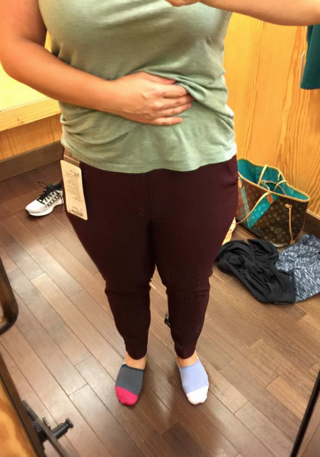 I grabbed these in my sometimes size 8, although admittedly I am a true size 10. Many of the high rise pants I get at lululemon are perfect in a size 8 so I decided to try that size in these since I’ve lost weight and my 10’s are a little big. Well…you can’t really see it in this picture but I couldn’t even pull these pants all the way up. The material stretches out to white and they are sheer because just like the Define Jacket above, it is backed in white. Do yourself a favour and don’t get these unless you try them on in store for yourself. They were horrible. Print is really pretty but the material is a total disappointment