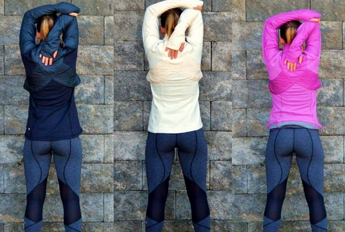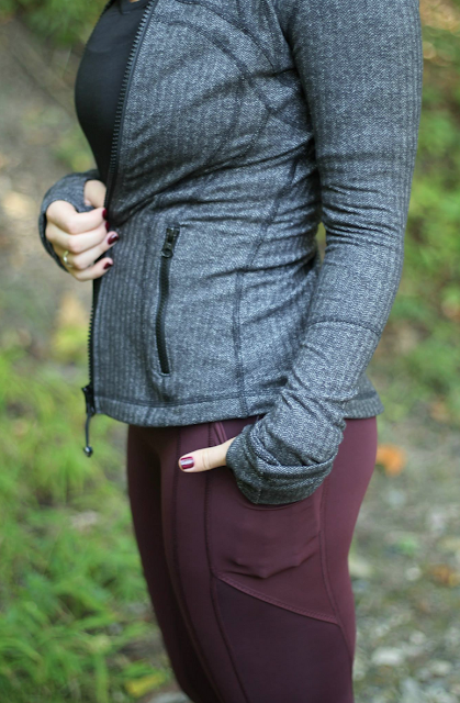 Those are Inspire Tights in what I think is Heathered Slate or Heathered Black. Check online on the US side for them. They should be in stores now but I haven't seen them at my local Vancouver stores.