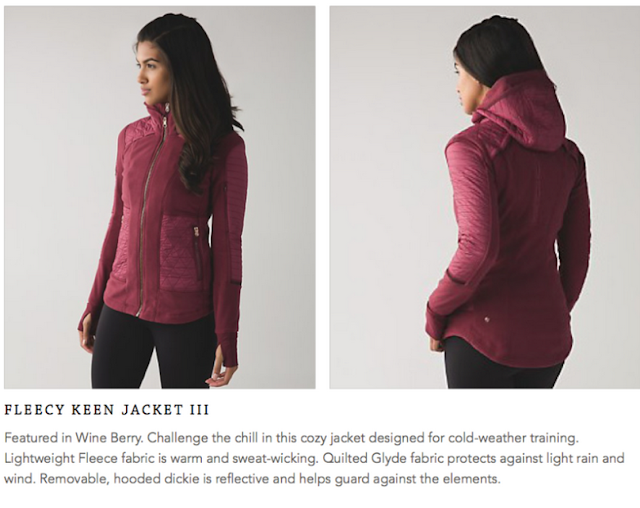 Not an overly intriguing What We Love this week but I know you wintery runners will be very happy to finally see the Toasty Tech Tights make an appearance. The Fleecy Keen Jacket is back in an edition III, and I believe is also coming in Fuel Green as the Honk Kong site has that color. Although that may be last years edition of the Fleecy Keen Jacket in Fuel Green. The jacket in person is GORGEOUS!! But extremely warm. I find it way warmer than any of my Lululemon down jackets.