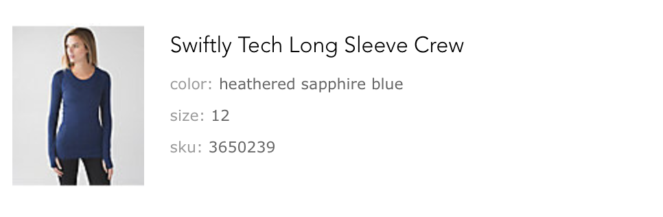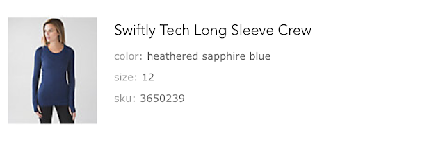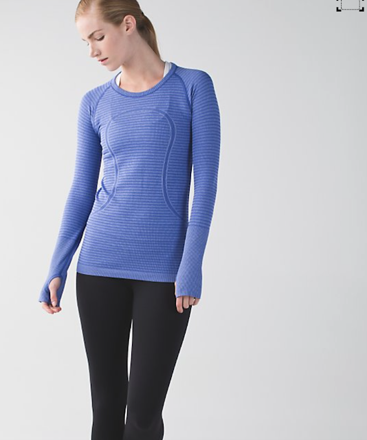 2) Heathered Sapphire Blue Long Sleeve Swiftly (first I've bought since last winter – don't really need it but the colour is beautiful)