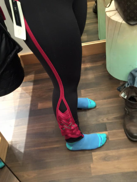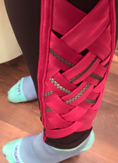 I really liked the Pace Tight *SE Weave a lot but these are not meant for people with short calves and long thighs like I have. The weave design at the bottom was just huge on my lower calf and it bunched up really funny where it would have highlighted long calves really beautifully. From the front I really loved these and absolutely loved the Berry Rumble piping on them but I don’t think I could make that lower leg detail work for me. They were opaque and the black luon on this was nicely matte which I find slimming.