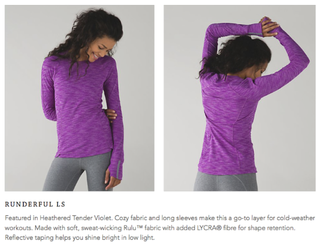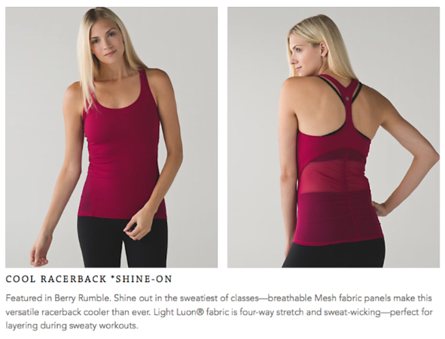 I just have to say that even though it's winter, it doesn't mean it's cold everywhere. I live in Florida, where it's still hot and have the a/c on 🙁 It's nice that everything isn't long-sleeve or down in some of these beautiful colors (berry rumble, tender violet), so climates like the south can wear these colors too. I personally don't care for the mesh look, but it's nice that lulu isn't forgetting about warmer climates when so many other brands do during winter.