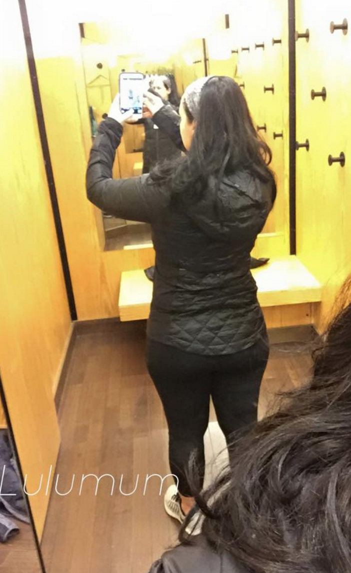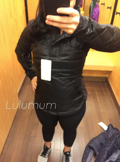I also really loved the Down For A Run Jacket and especially loved the back quilting design. I wish I had also tried on the white but I looked at it and worried that I’d never keep it clean so why bother trying it on. Now that I’m home I wish I’d just looked at it at least. This was also a surprising TTS. I always find these down run jackets so snug around my hips that this felt downright loose. It wasn’t loose, but it felt surprisingly unrestrictive. I’m having such a hard time choosing between the pullover above and this jacket. Both are great! I think the jacket is more versatile since you can outfit it better while the black pullover is more commitment to wearing a black pullover with no contrasting color showing to break it up. I’d also never wear the pullover out running since it is so warm, but I do see myself wearing it as a To/From to the gym and worn casually. Especially to soccer practice since it’s become so cold here suddenly.