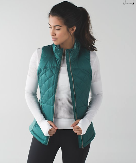 Did you decide yet Lulumum? I took a break and walked the dog, came back and ordered the black grape pullover. My rationale was a) I love the black grape color and b) in terms of style, at least it's different than my other down jackets. Although I like the quilted back of the jacket better than the vent, the jacket just felt a bit uninspiring to me since I already have a black and navy down jacket (non-Lulu). I still love the color of the green vest, but it's described as a "transitional" piece which should have come out a month ago for me to get proper use out of it. So I'll probably pass.