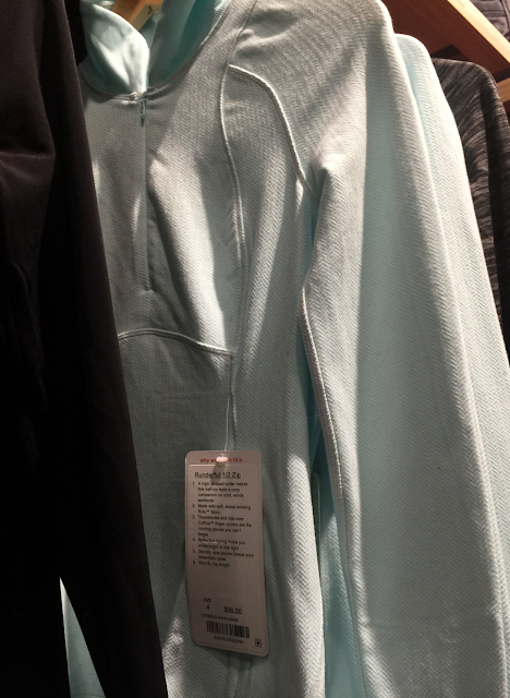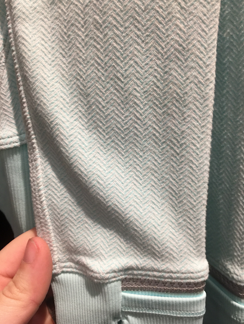 Sorry for the not so great snapshots but I wanted to show you this new Runderful 1/2 Zip that my store has. I believe it is an Aquamarine Herringbone. It’s soft but I didn’t get a chance to try it on for you for a proper review. Aquamarine is a bit too light of a blue for me and it washes me out but if it’s a blue that works for you I think it’s beautiful.