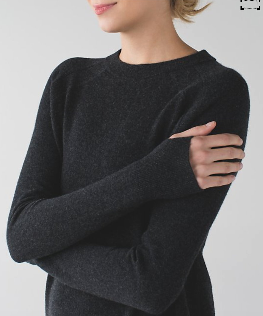 Did not get anything. The cashmere sweater is very pricey and I doubt the quality will be top notch. Probably made in China like the rest of Lululemons products.