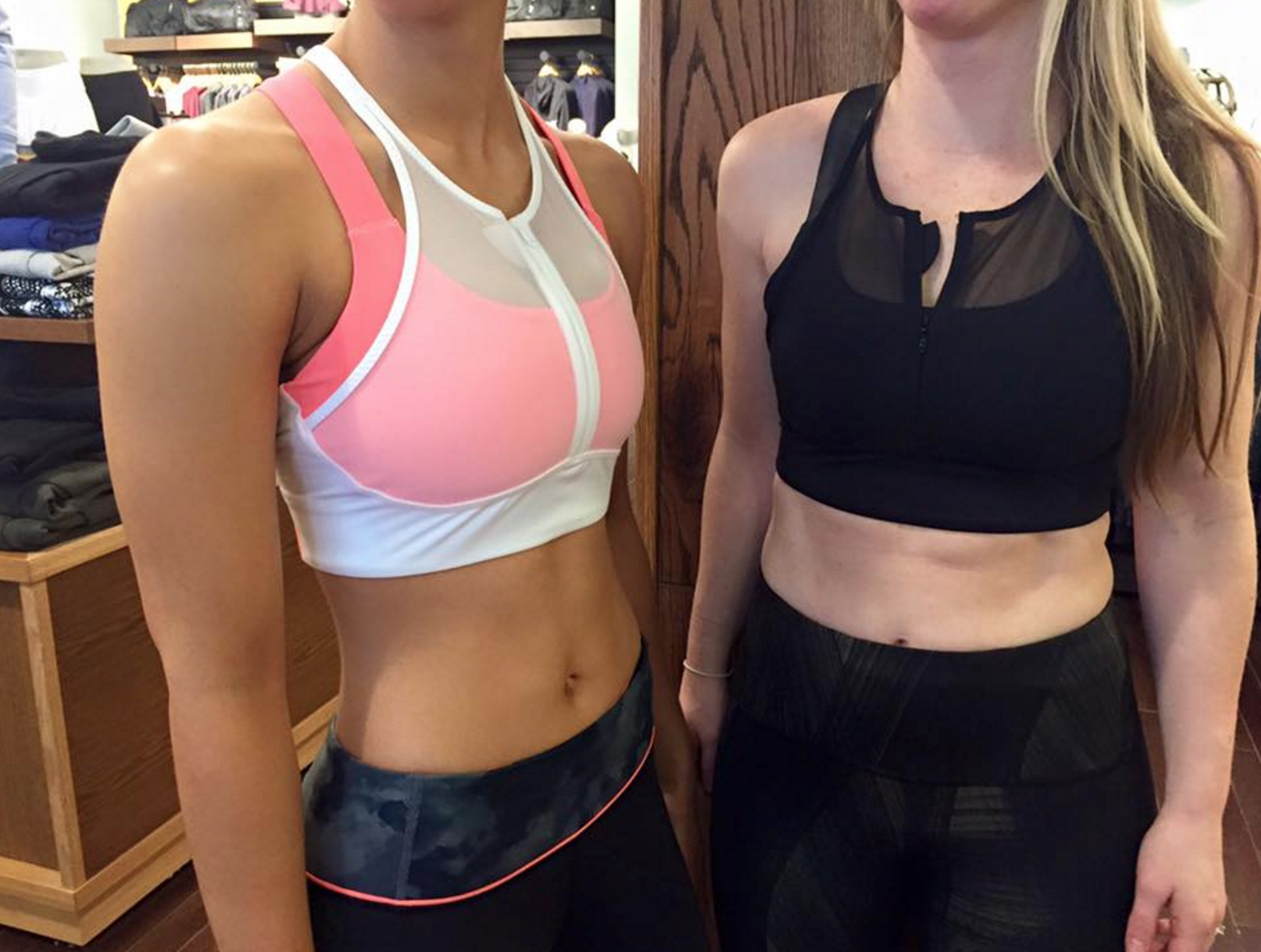 Really not sure about the point of the Ready Set Sweat bra. I mean – front zip is great, but front zip that only goes partway down (so you still have to wriggle in and out)? Over-complicated and fussy. And the pink/white one, with the sheer mesh over a darker color – screams "Look at my boobs!" in a very fugly way. Design fail.