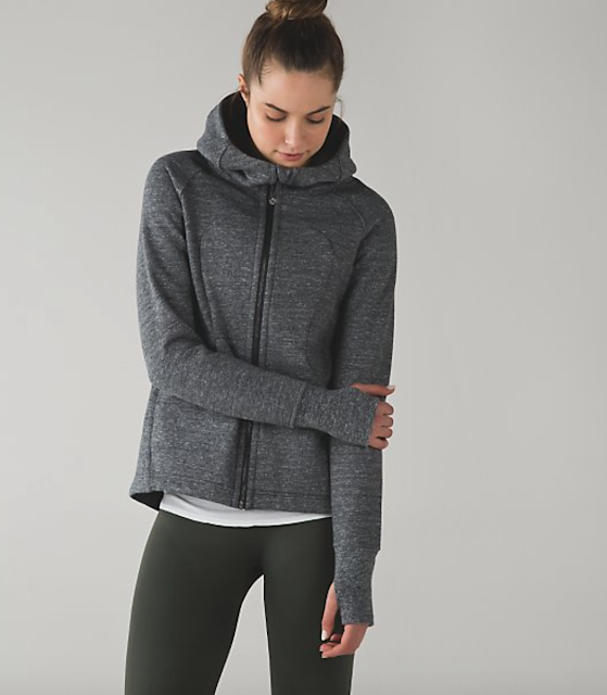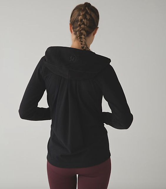 hoody is cute – maternity like, but cute – sort like the exhalation pullover from last year – I think I wore it once. I would prefer a wrap for after a workout – i get so much use out of my savassana one —- not sure I need another wrap! lol