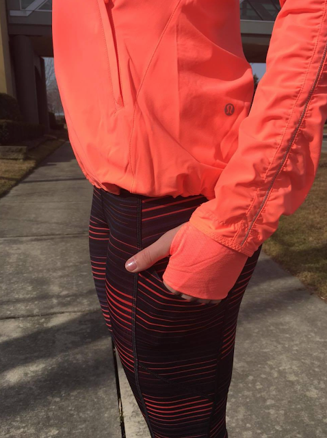 I am waiting for the Gather Me Slightly to come out in some other spring colours (hopefully). I really like that it has thumbholes and is lined in mesh but I wish the sleeves were lined as well. The neck detail is really nice but is very bulky when the hood is inside. It also runs big, I had to size down one size for a good fit.