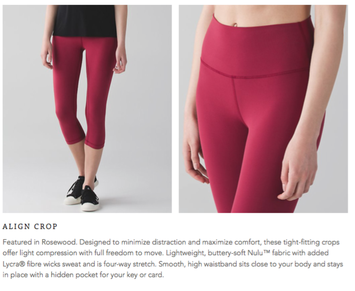 What we love is up! I love that one of the sneak peek items, the Align Crop, is already in many US and some Canadian stores. I think the big deal item in this post is the Pure Practice Pant in Deep Zin. There have been a lot of readers asking about these pants in the comments over the past week. FYI, I ended up returning the Love Tee II in Deep Zin. I really liked the color a lot but I’m not sold on the stripes. I have another blue Love Tee with stripes and I don’t gravitate to it.
