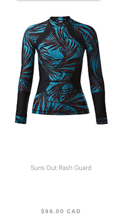 I wish I’d gotten a picture of it but this Strappy Back One Piece is now out in an ocean wave print similar to last years water bound singlet. The print in the bathing suite is the same tone top to bottom vs. ombre.