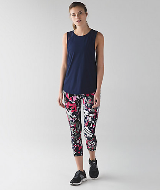 Well, I am excited about that Heathered Bali Breeze Scuba Hoodie III. A few ladies had purchased this Scuba a few weeks ago when it uploaded for Australia and reports are that it is a softie. I love Bali Breeze/Menthol so this one I needed. Heathered Gris is lovely too but Bali is my color. I also liked the Fast Lane Singlet in Pop Cut Boom Juice. As I mentioned in the comments in an earlier post, I saw this singlet in store yesterday and gravitated to it but I ended up leaving it behind without trying it on and have been thinking about it since. I hesitated because I’m worried this is a print that will get dated very quickly. On one hand it’s a little bit Anne Taylor Loft, and on the other it’s a fun print that attracted me. I at least want try it on and inspect it in person before ruling it out. I like the Pace Rivals in this print as well as the Nami Wave but I need to keep reminding myself that I don’t wear printed bottoms.