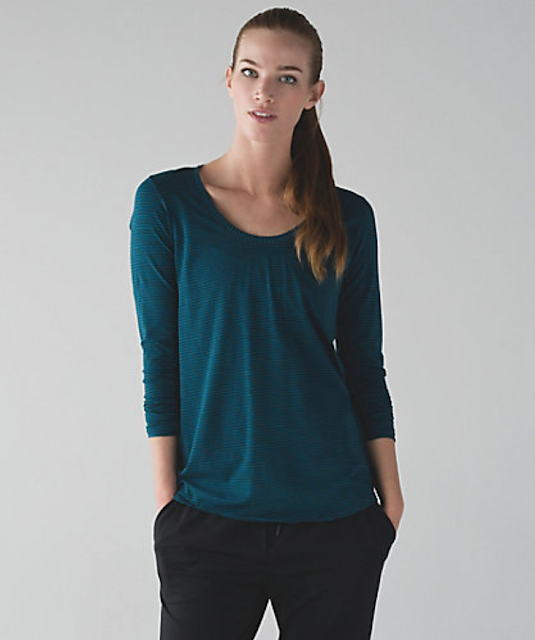 I ordered the Alberta Lake/Tofino teal yoga everyday to try. ( can't resist that colour) I just got the AB live tee today in the mail, and the v neck seems even lower than the older version of Love tee. The colour is amazing but I kept looking at it thinking this tee is $60? I think it's going back. At least the cuff sleeves on the older version looked a bit more dressy. I also picked up the desert olive urbanite back pack in store last week. It is super nice and has a tons if great details on it. Will make a better carry on/purse for travel….