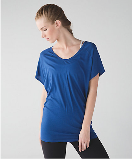 I got the CoolRacerback in HB and the Love Tee in both Boom Juice and Hero Blue. I size down in the Love Tee and the vee isn't quite so bad. My husband loves the lower front (boys) and I wear the tee casually around the house, so why not. 🙂