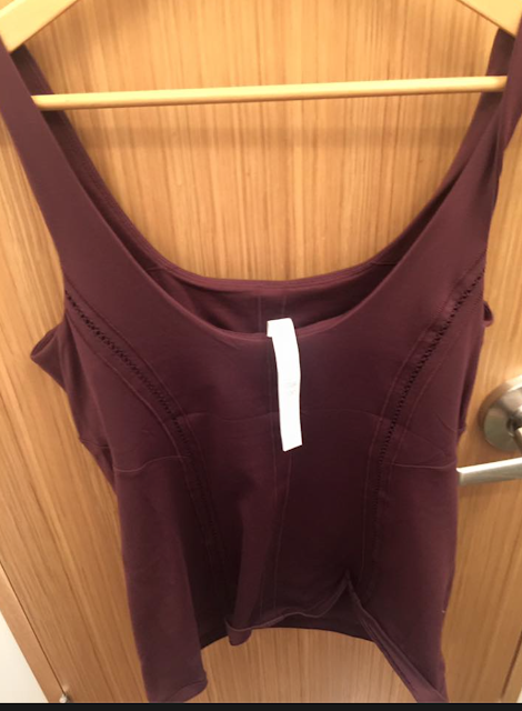 Sculpt It Tank was nice and I appreciated that despite the fact that it has a built in bra I could comfortably wear it over my regular bra without too much strap showing. I have a bra that would work better for this. Again though, drab Bordeaux Drama, grey, black and white. $64 is a lot of dough for a tank.