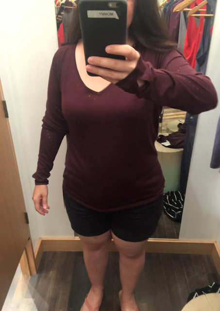 This reminded me of the Exhale Pullover with the pleated back which is the cotton version of the Tuck And Flow. I was so excited to try it on despite the drab colors but alas, it was not at all the beauty that was the Exhale Pullover. Not at all. That pullover sold out before I was able to get one and I regretted missing out. I know you OG readers will remember that pullover. This is a shorter boxier version and it just didn’t do anything for me. TTS 10 for me.