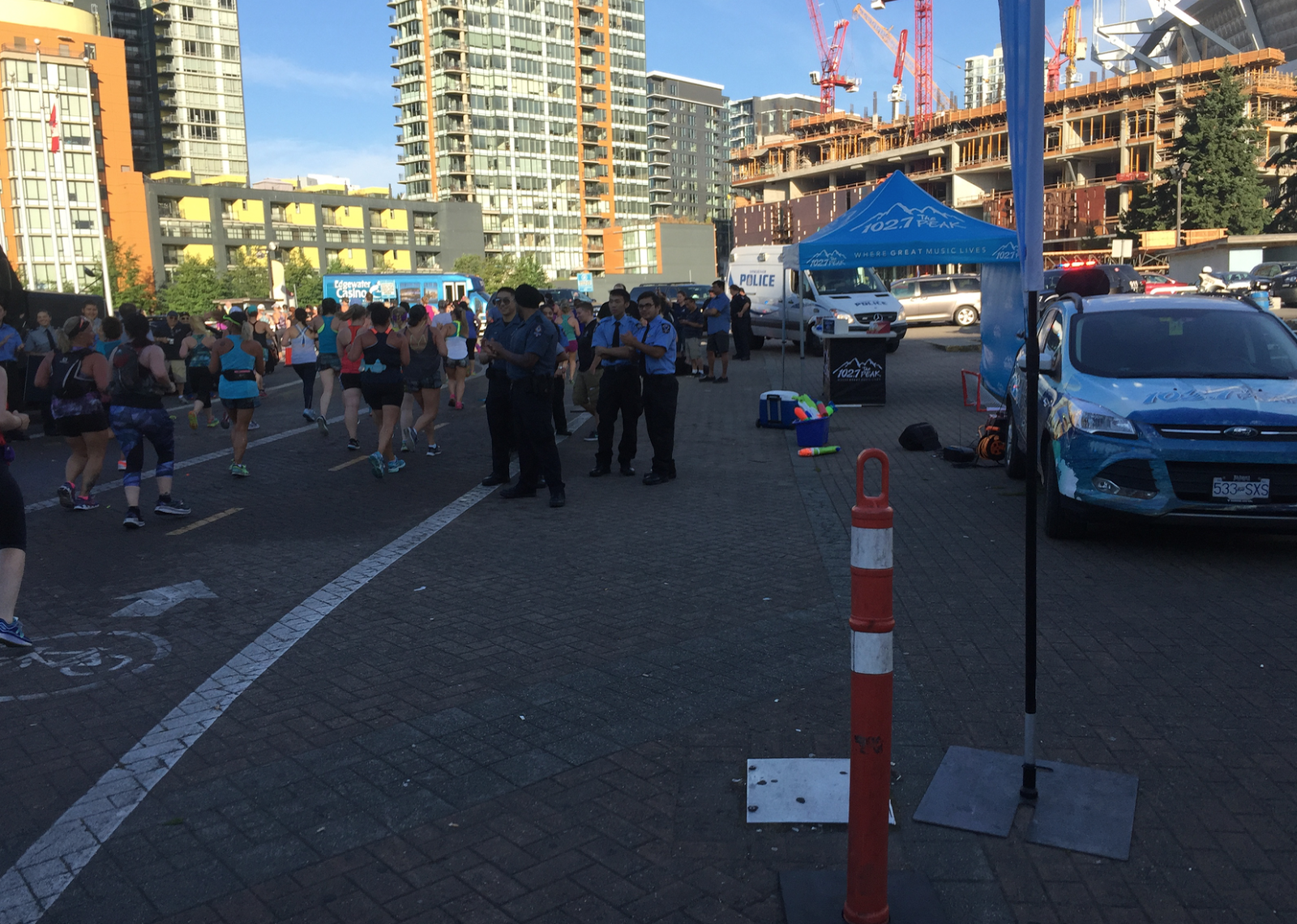 This was just after the bridge heading into Kitsilano where the Lululemon corporate office is. This is the first year ever where head office staff where not outside the building cheering on runners. This was something definitely noticed by many.