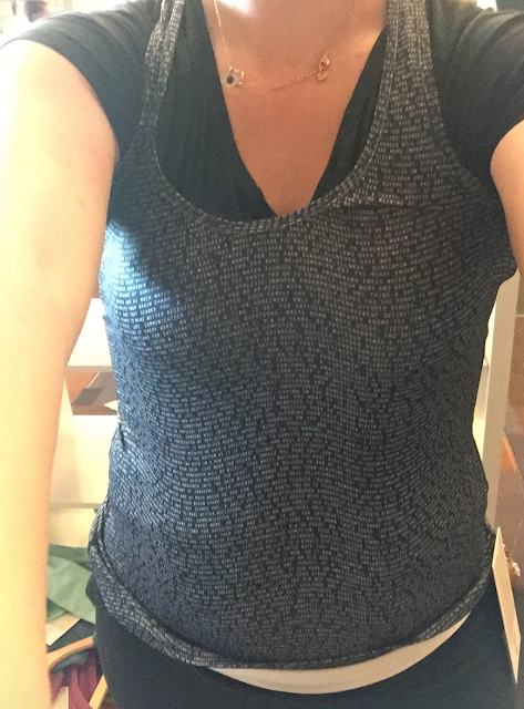 I almost got this Cool Racerback in black and white manifesto typewriter print but when I tried it on I thought the wavy lettering was not slimming. There where shorts in this print as well and I really liked those too. The black and white was much crisper in the shorts.