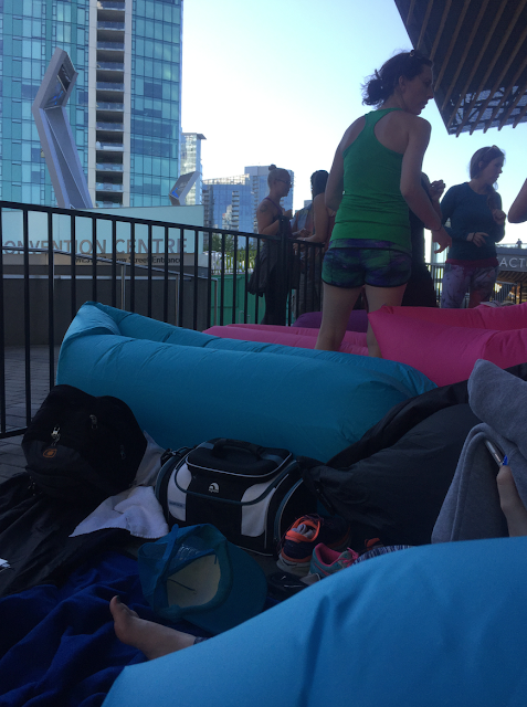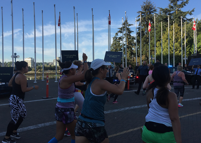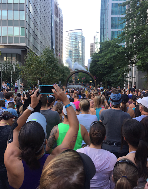 This was my second SeaWheeze in a row, and I loved this year's theme. It certainly made for some fun swag at the showcase. I got the beat the heat longline bra in the black and white Vancouver map print with the matching run with the sun crop, 2 intensi-tees (gray and pink), 2 speed shorts (Vancouver map print and fingerprint pattern), socks, and a tee for my boyfriend (I forgot the style, but the one with the binary code print that had hidden text–wish it were available for women), and an energy bra in the fingerprint pattern. Did anyone else find the run with the sun crop more snug than most other crops? I just worry that the line up for the store is getting too crazy. I got there at 2:45am after a red eye flight, and the line was already wrapping around the convention center toward "The Drop" sculpture facing Canada Place. Last year, I lined up at 4am and was further up in the line. I feel like the store is more stressful and exhausting than the half marathon itself!