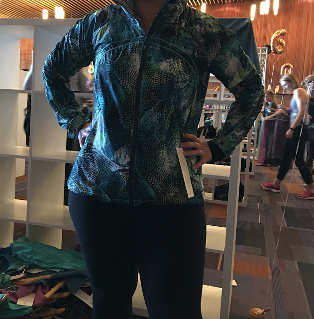 I didn't wait in line for the showcase store. I walked right in around 11:30am and got a crb (purple and black print), a l/s swiftly and an energy bra. I would have bought crops and fast track shorts too if they weren't backed in white.