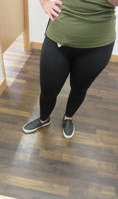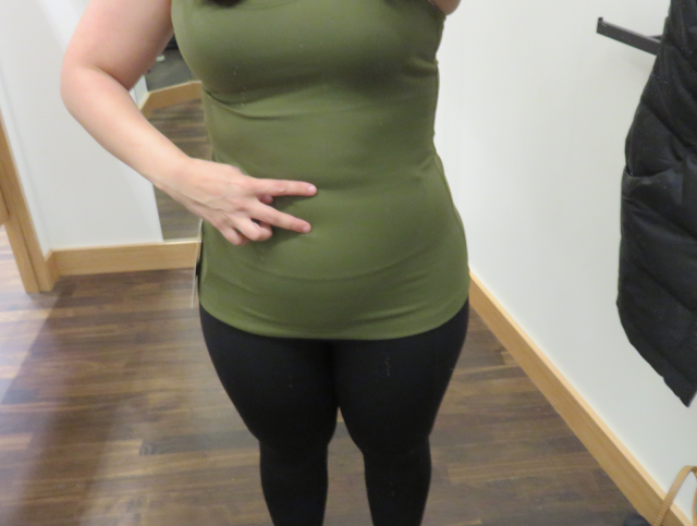I really liked this jacket and loved it in this color. Comes in black and white in store, and online I’ve seen it in Sapphire Blue. I found the front seam details really flattering and slimming and the inside was really soft and cozy. I didn’t love the $158 price tag. Was last years glyde/rulu jacket this expensive? I’m considering this one but may have to wait until markdown. I loved it but can’t really justify it. Underneath is the new Military Green Cool Racerback II. I would have jumped on it in the regular CRB version.