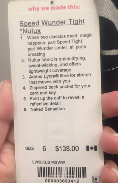 I’ve been so intrigued to try this new material NULUX in the Speed Wunder Tights because I’ve heard a ton of hype about the material from educators, and a few shoppers that have tried them on over the past couple of days. The stores have been really excited about this product drop. The pants feel really amazing on but I do have some issues with them as well as some positives which I will be definitely highlighting here.