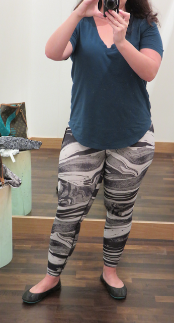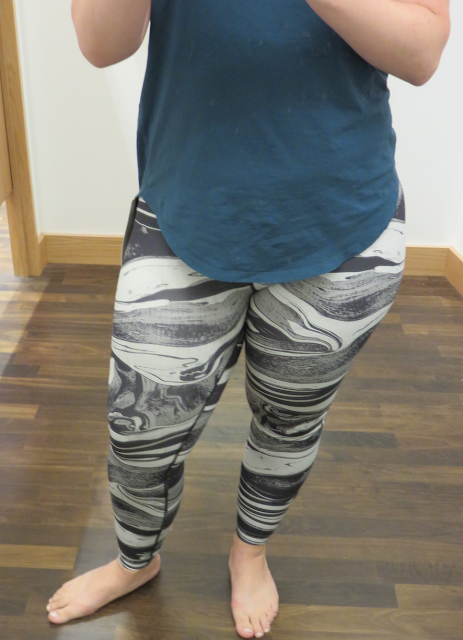 Another issue I have with these is the price. With tax, these came out to $154.56 which is just absurd to me. Absurd especially because Align pants in NULU, the last ‘new’ material that was released, the price wasn’t jacked up like this. I don’t really get the $60 increase in price for these. The ‘engineering’ of the print may validate a slight price increase of $10, maybe even $20 would be tolerable if they are really spectacular and slimming. Like other readers have mentioned though it doesn’t seem as if this print was contoured to flatter shape because of the way the print is asymmetrical at the butt. You tell me, I’m pretty curvy and have shorter legs, does this print do any miracles for me? I think it’s really nice and it really highlights curvature but I don’t find it lengthening or slimming.