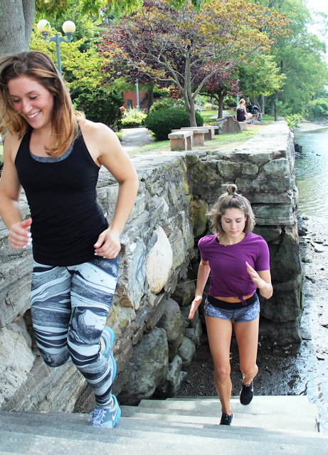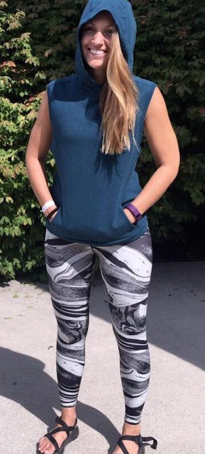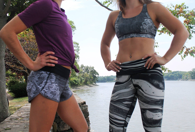 The mixed marble print in those pants is sort of a disaster to me. It does not make these nice athletic girls look good, what's it gonna do to me? No thanks. Not a fan of mismatched weird prints anyway.