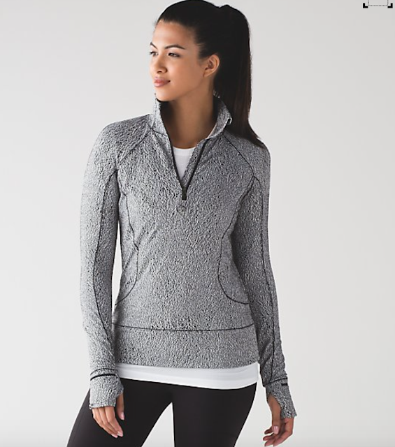 I tried on the rush hour long sleeve today. The pattern grey one felt slick not like rulu at all. I tried in a blue. Didn't look at the hang tag maybe sapphire….I only tried it on because it had cuffins and I live me some cuffin's but it didn't fit so good. The band around the bottom was snug and made the rest of it a little puffy so i tried a size down and that was no good either. I rarely run in my rulu tops anyway because I over heat. Easy pass for me. I did like the belle long sleeve but NOT for $98. I left the store with a pair of socks. I just don't like the fabrics on anything right now. I did buy the vintage paisley winder unders in fuschia and really like those. The tiny tooth interests me too. I agree a pullover in that print would be awesome. I also breezed thru athleta…they have a lot of lulu''esque items right now. Herringbone, black and wine and navy. Some really cute pants though.