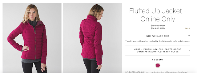 I got the fluffed up jacket in white- it's so pretty and exactly what I've been waiting for the past few weeks! I was so concerned they would sell out that I quickly checked out and got it. Kinda sad that the site is down now and the email has gone out because I'm sure I won't get the speed tights or the party om bag I was considering as well, but I can live without them. It's funny though, I had a friend over this after noon and I was bragging about my great deal and she said "yeah it's been sad they keep putting out all this stuff with mesh on it like we're going into spring, it's getting cold outside!" MY THOUGHTS EXACTLY! Sad that they're recycling old gear rather than giving us some fresh stuff, but I really won't complain too much.