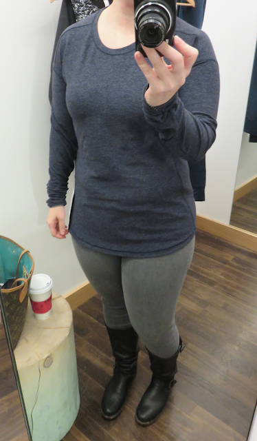 I tried this on in my TTS for a previous fit review but today I wanted to try on the size up. I much prefer this sized up and it came home with me. I’m starved for rulu long sleeves this year. I wish this was a little bit more like the Tuck & Flow LS and I wish it didn’t have that dropped seam at the arms, but otherwise I really like this LS, and in particular this color. I find this top has the softest and thickest rulu of all the rulu tops out this year. It’s selling out online already which is unusual these days, so I opted to take advantage of the long holiday return period on this one.