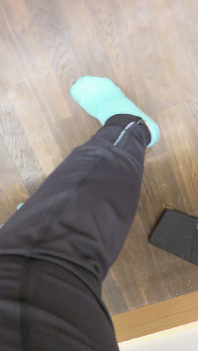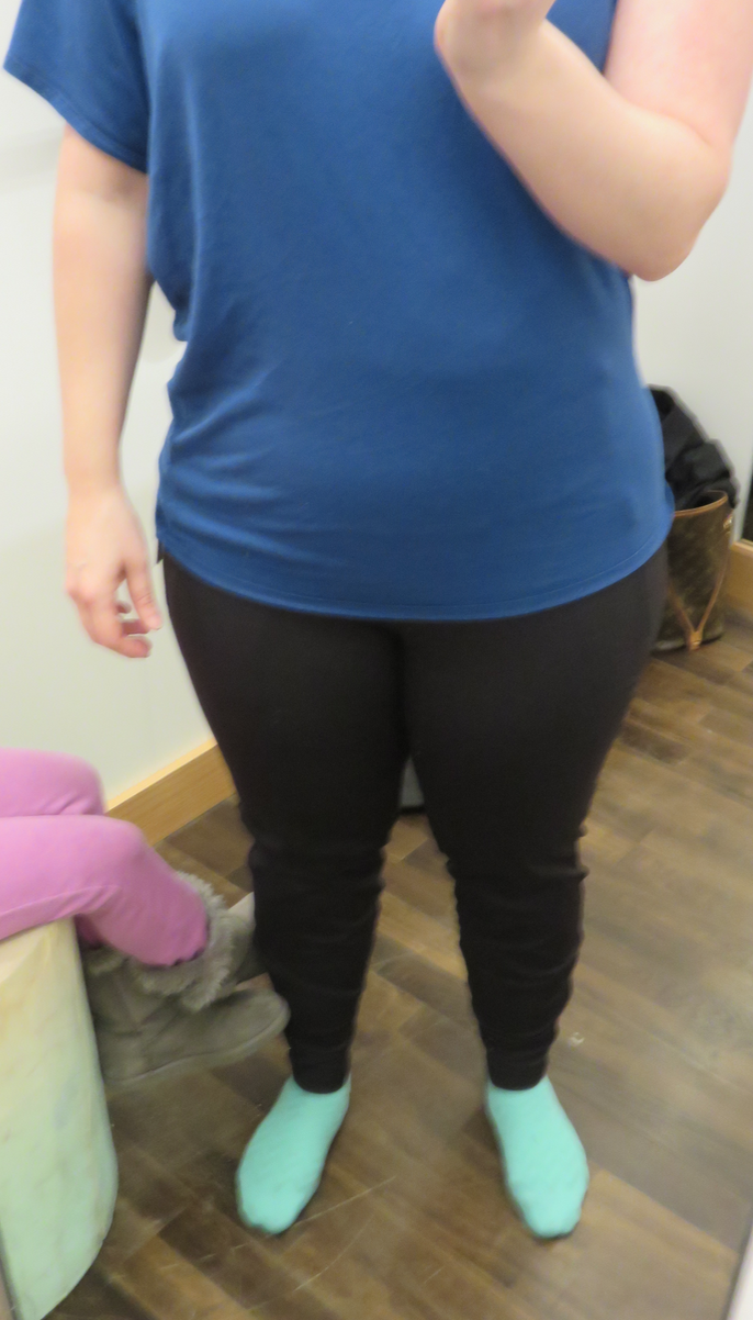 I really liked the print of these in person. They are very graphic and contrasted but not too busy. I’ll definitely consider these. I didn’t do a squat test but pulling them on I could see a bit of sheerness over my knees, so definitely do a squat test in these because they may be sheer. Luckily I didn’t see much print fade when they where on because the beauty of this print is how contrasted and sharp it is.