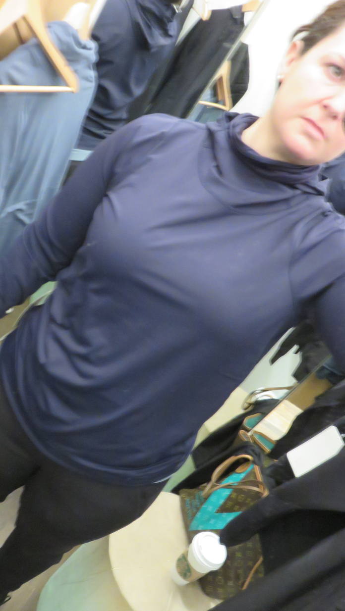 The Pick Up the Pace looks cute from the back. The longer hemline is giving it some nice shape, but the front is so plain. And like you said, I also don't care for the bunchy neck becoming a hoodie look. So odd. But double rulu, so maybe on a really good MD.