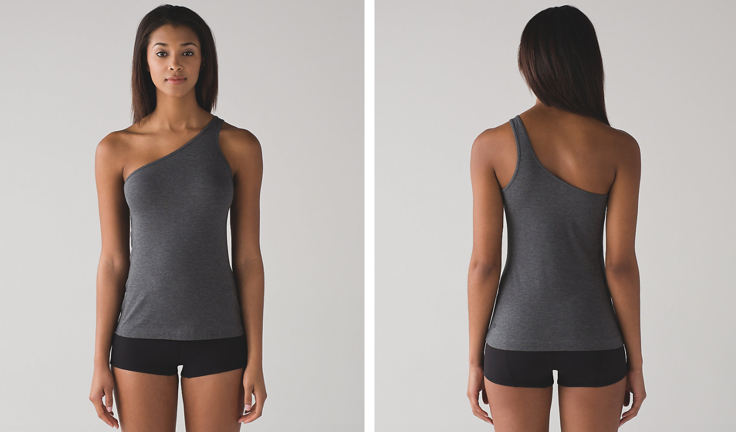 The Cold Shoulder tank, I've seen a one shoulder worn in yoga. Not sure how practical it is but I guess you could, depending on the type of practice. No doubt it is aimed at the twenty-something crowd who like to also wear cropped tops and sweaters in full on winter with their winter jackets hanging open.