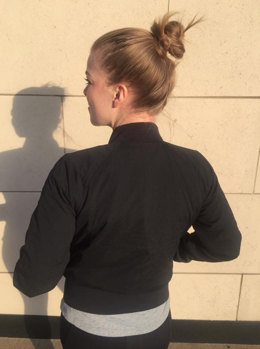 Sorry for not having a ‘fit review’ post up this week. The early upload really threw me off, plus my store hasn’t received the new products yet (including the non stop bomber). I did get the two sizes of the Non Stop Bomber delivered today (my TTS, and a size up) and my TTS is definitely the size I want to keep. I like the look of the jacket on a lot. I’m not 100% sold on keeping it though because I’ve since seen two other bomber jackets I really like by other brands, one is a pink satin bomber jacket by Brunette The Label – based in Vancouver and you can even add lettering to the jacket ($165) and another one is a very similar satin olive color on sale at Aritzia for $68 (sorry, the only color on sale is an eggplant, olive is $138). Either way, I should probably try on a few different ones before settling on the Lululemon one.