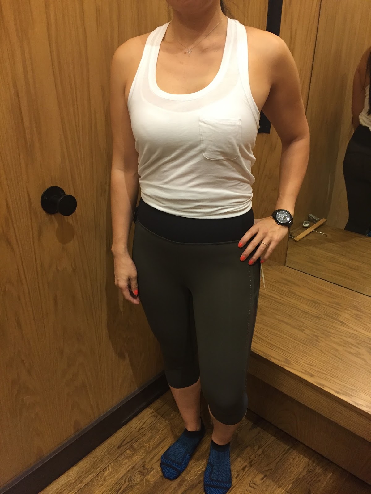 The little reflective dots all the way up are cute, but I agree the reflective strip on the top of the mesh is strange. I didn't read your review before I scrolled the pictures and I couldn't figure out what that reflect strip was. I thought maybe they put the tear-away tag in a weird spot. I'm not a fan of the contrasting waistband on this one. It would have been better in solid olive. But they are flattering on you.