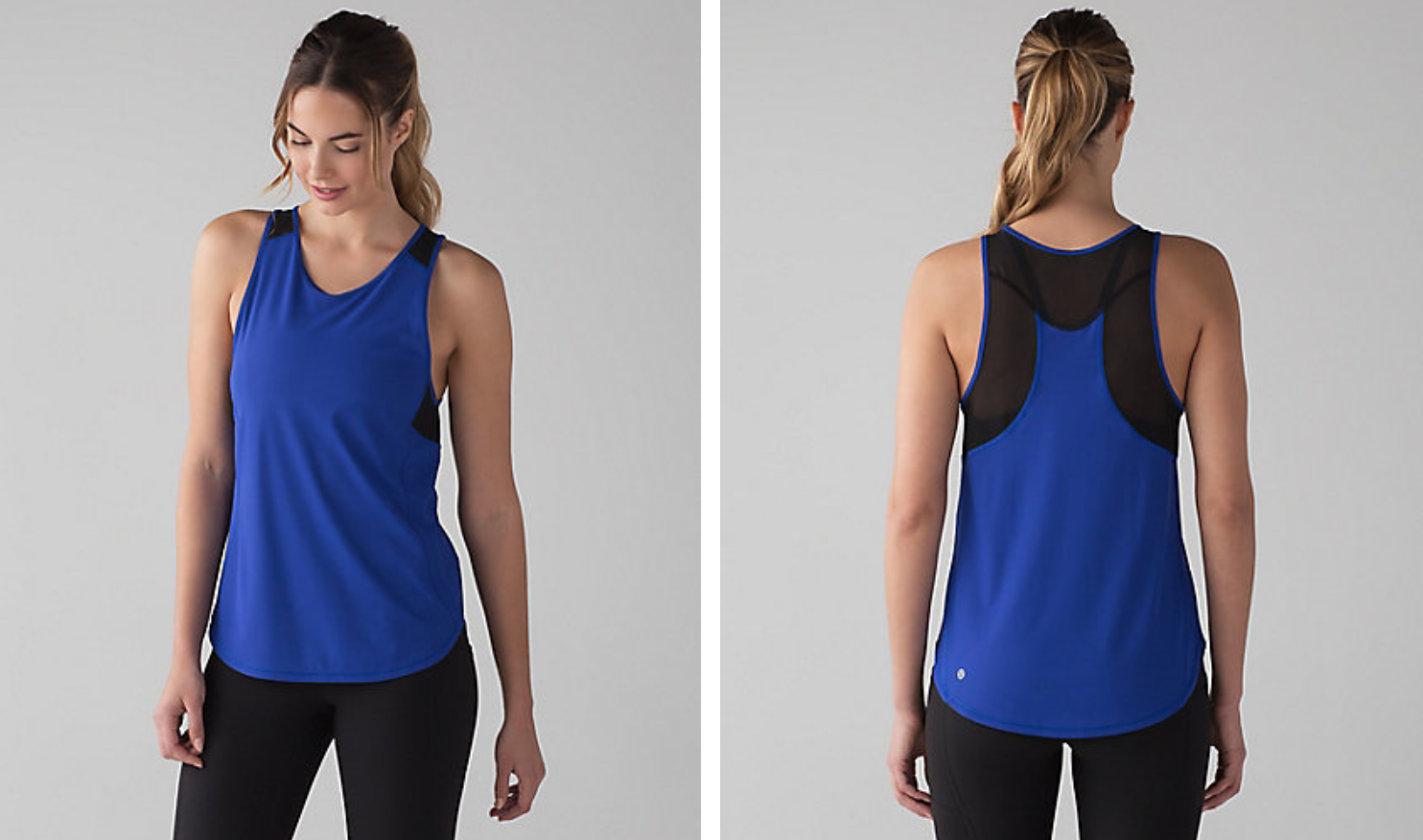 Lululemon uploaded 2 muscle tanks with sayings on what's new. One says namaste backwards and the other says highly meditated.