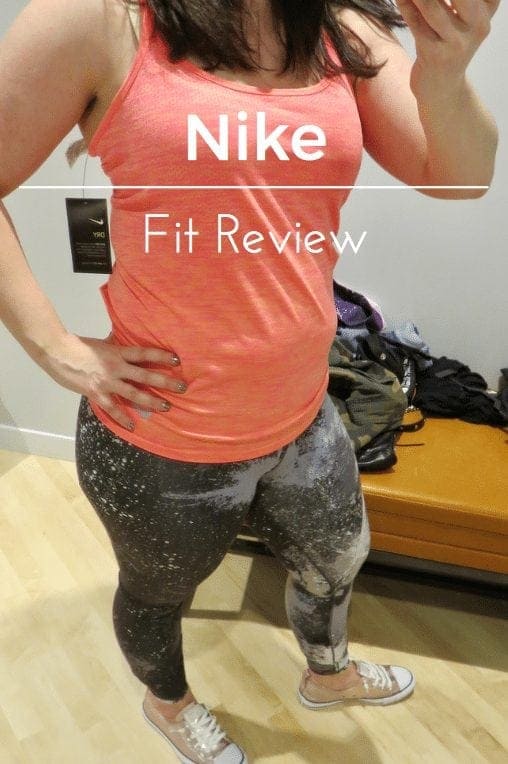 I really love this Nike Dry Knit Tank. It’s kind of a merge between a racerback tank and a looser fitting singlet, and a polyester knit fabric – but the material is really soft and silky and cool, but not delicate. I can’t see this snagging easily. This tank totally replaces the ‘racerback tanks’ in my collection and in my top 5 list for workout tops. I love the colors it comes in and that the heathering is contrasted with wisps of other colors. I’m not an orange person but I love that the Sunset Glow orange has purple heathering in it, so I think this one was actually my favourite. I love that it’s loose but not oversized or saggy in the armholes. The photos below are of the tank in a size L (I’m a 10 in other brand tops) and I actually ended up purchasing the XL without trying it on. The L fit really well and I am considering going back to exchange the XL for the L, but I also like that the XL is much looser in the middle. The negative about this tank is that it’s quite a lot pricier than my racerback tanks, but, it is on sale in the US for the same price as a similar brand and style.