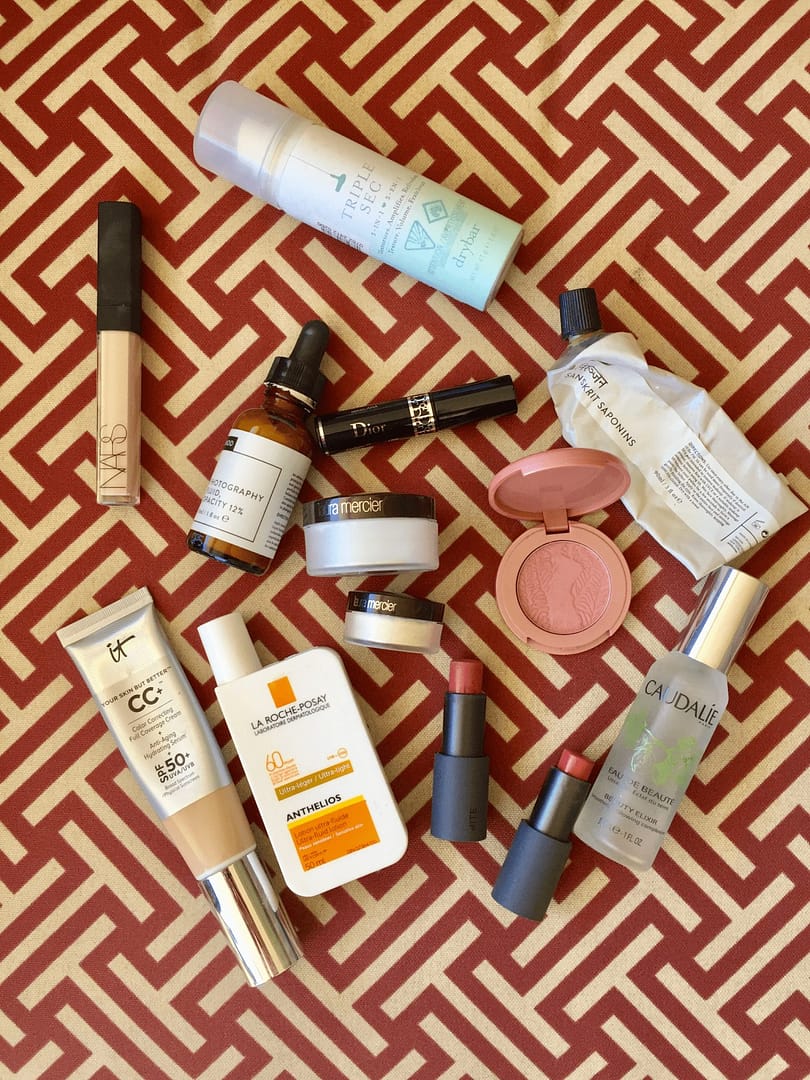 Now that I’m 37 I’ve clung to my sunscreens and am as fanatical about not leaving the house without sunscreen as I am about not leaving the house without wearing pants. My La Roche-Posay is great because it’s so thin and liquidy that it goes on quickly and easily and feels like I don’t have anything on.(Ulta currently has that sunscreen on for buy one get one 50% off). I’ve read that this particular sunscreen makes for a great makeup base and I agree. Another item I found really helpful while on a sunny vacation was my It Cosmetics CC cream because it really had great coverage without looking matte, and had the benefit of SPF 50. I really didn’t need concealer when I used the CC cream because it fully covered the redness on my right cheek from rosacea, so this was nice. I love having high coverage but without a caked on makeup look, so the fewer products used to achieve full coverage the better. The packaging of this CC cream is also very ideal for a travel bag since it comes in a tube with a pump at the end, and a lid. I highly recommend streamlining your products like this foundation + SPF combo when you travel. Another streamlined item I keep in my makeup bag is my Bite Beauty Multi Stick in Mascarpone and Papaya (love both of these colors and yes I need both on me at all times!). This multi stick works as a lipstick, blush and eyeshadow and it’s really very functional for all three. I love the matte stain I get on my lips with it though and that’s my main use for it but I like having an eyeshadow option in my bag just in case. I also recommend using your Sephora points perks for those mini makeup pieces like my blush and my mascara – I save those for travel!