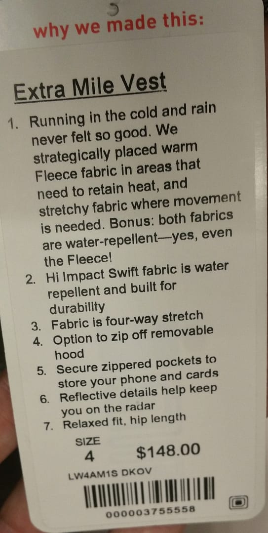 Mrs. O is such a life saver! Many of you have been asking for fit reviews of the Rulu Define Jacket and Extra Mile Vest and she’s come through with some awesome reviews. I’m completely housebound this week packing boxes so not able to check out the new items in store until next week so I so appreciate getting Mrs. O’s feedback and recommendations.