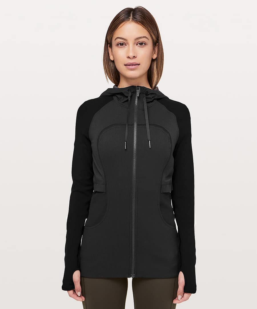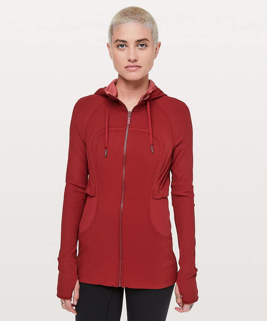 I did order the Fast and Free Crop in the Incognito camo multi gray, but nothing else. I don’t understand why they made the “rib sleeve” version of the Dance Studio Jacket. It looks kind of odd. (I wish they had offered the red color in the regular Dance Studio Jacket.) I’m also wondering about the “Movement to Movement” Jacket. It looks similar to the Contour Jacket which is now on WMTM, but the fabric is different.