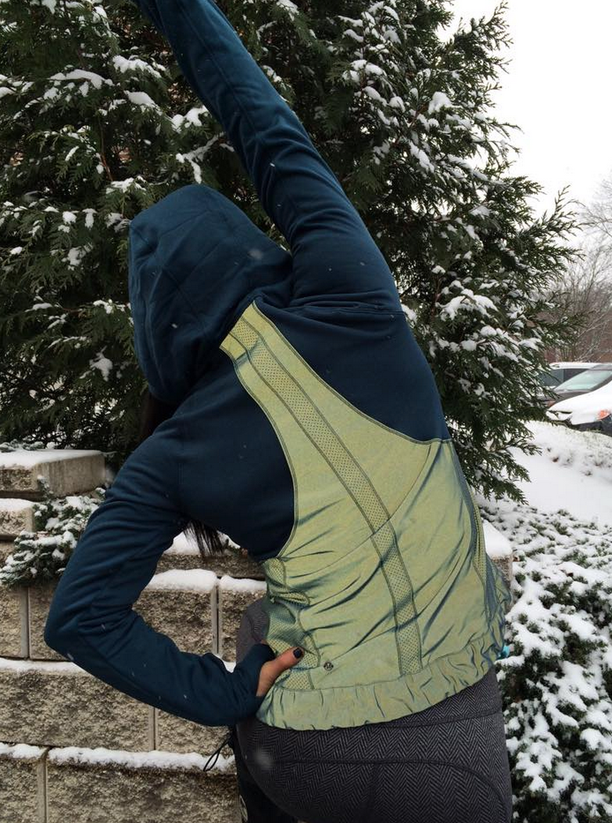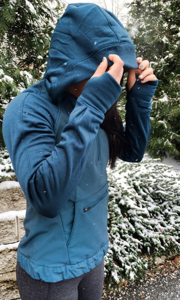 I’m surprising myself by really being interested in the Let’s Get Visible Hoodie. I haven’t liked any of the reflective pieces in the past. I’m loving this in Alberta Lake and also really liking the cuffed hem on it. Instead of the Fluffed Up Vest tonight I think I’m going to try this one out. Since I do 6am Crossfit, many times that includes outside runs in pouring rain in a dark industrial neighborhood so I think this would be handy.