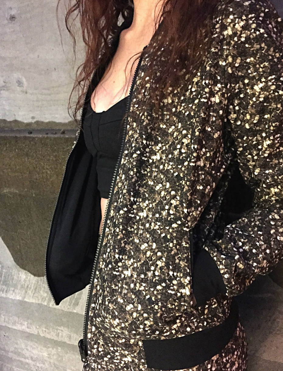 Lab Shadow Jacket, Shine Tight Roll Down Shimmy Shimmer Black/White