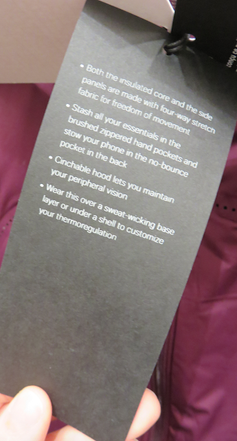 The vest was nice too but I like last years (and restocked this year) Down For A Run Vest. The quilting and the rulu sides make it a much more stylish option. I think the matte black of the glyde in these pieces will appeal to a lot of you though. This vest is comfortable and really light, and warm but not toasty.