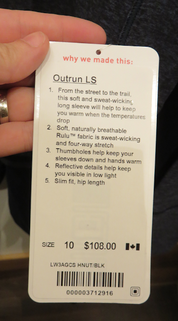 The website has some close ups of details on the jacket that make it look promising, but again – like the Rush Hour – it looks too short for me. Has Lulu got a new strategy to get rid of their tall customers? Seems like tops, pants, and jackets are all getting shorter. They might save a few bucks in material costs, but I'm not buying a jacket that doesn't fit – no matter how much it gets marked down.