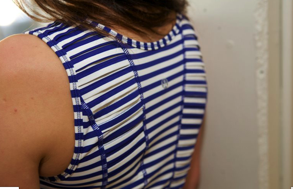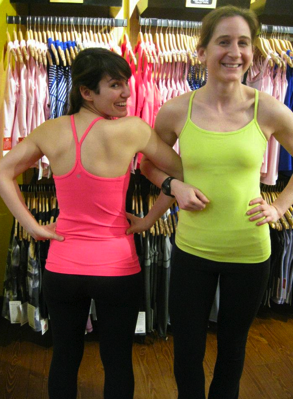 Thanks to Melissa for this comparison photo of the old Wren Camo Cool Racerback Tank on the left and the bra portion of the new Camo No Limit Tank on the Right. You can see that the newest Camo print is much sharper and more saturated. I’ve also been told that the Cool Racerback Tank is indeed a heavy polyester but I’m not sure if it’s less see thru than the last version. I really love the camo print but the high polyester content is a real turnoff for me.
