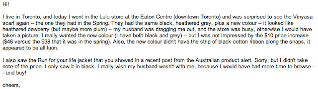 I’ve been trying really hard to behave and not get the Ghost or Heathered Wren Modern Tank or the Heathered Raspberry Lively Tee since I’m trying to restrict myself to running gear only but under the guise of checking out thru the new mobile lulu site on my iphone tomorrow to see how easy it is I may just order one of those three items. Maybe. I’m holding out hope that since lulu has made Modal Relaxed Fit Pants there may be a Modal/Lux Scuba Hoodie or Sing, Floss, Travel Jacket in the near future. Yes please! That would be my only wish list item for fall/winter along with a running luon long sleeve or pullover (heathered raspberry please!). Oh, and I’d love a dark patterned tall length speed skirt since those are my new loves for running. Ahh well, maybe a pretty Cool Racerback or two. That’s all. Modest wish list.