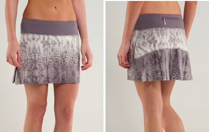 A new run skirt has made an appearance in US stores today called the Run: For Your Life Skirt. I just got my first run skirt today – the Run: Speed Skirt, and I love it so far so I’m excited about this one. I used to think the whole fad of running skirts was just a silly fashion statement and all about looking cute but I so get it now. You get so much more coverage then you do with shorts or luxtreme and the same airyness you get with shorts. I love that I can now run and not show all my neighbours my serious butt jiggle. My only concern now is with chub rub so I got myself a stick of Body Glyde and hopefully that is enough to keep me comfortable. The only thing that would make the speed skirt that much better is if it had a touch more length in the skirt and the inner shorts.